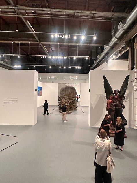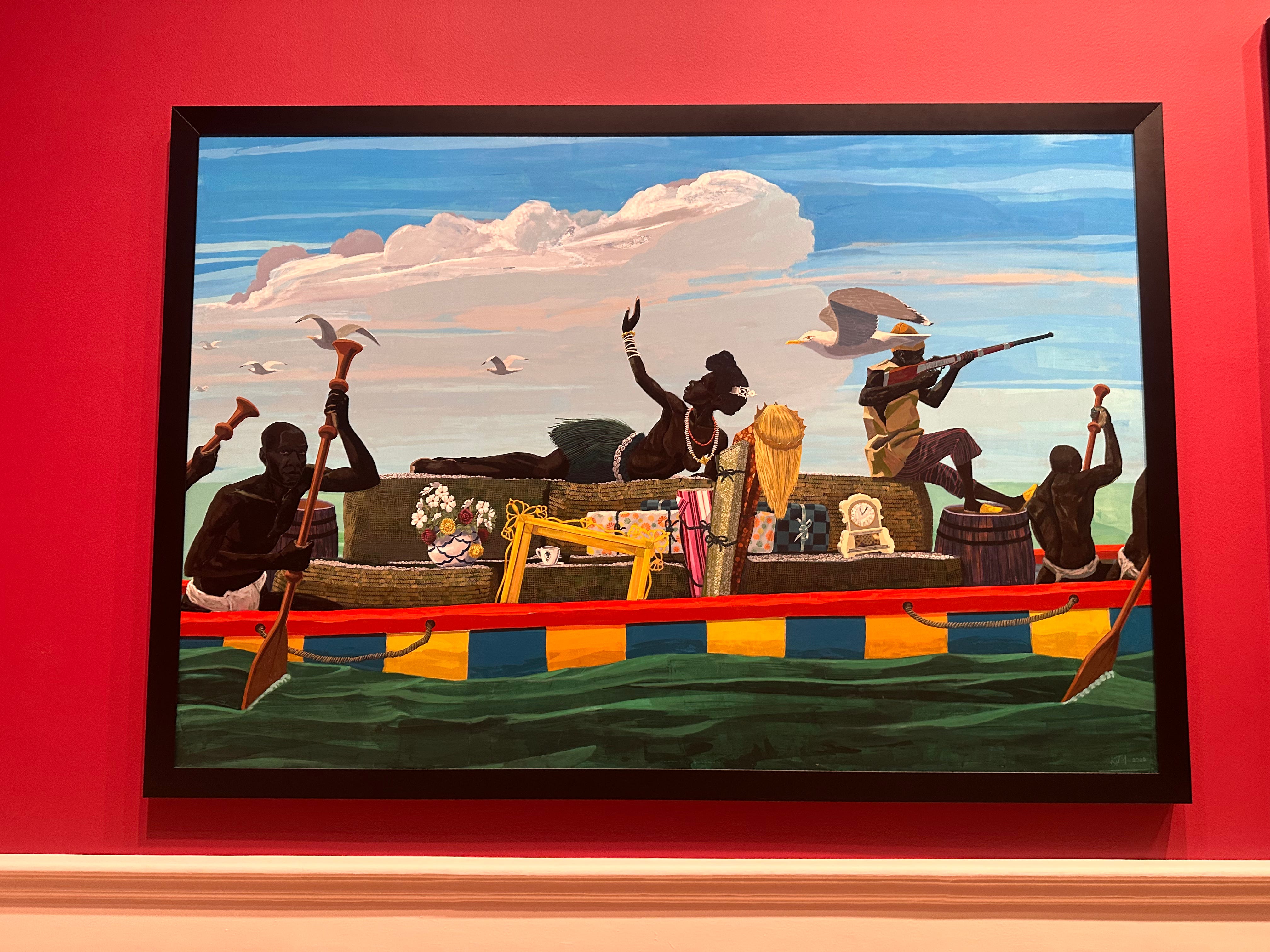 Most of the galleries were curated around past works, but the one gallery tackled a subject that deserves its own article. Titled, “Africa Revisited,” it depicted moments in African history that “are not often depicted” aka THE QUIET PART. Several of the paintings show vivid scenes of Africans kidnapping or selling their people into slavery in exchange for coveted European goods. In one pair of paintings I am still haunted by, one shows a canoe captained by an African kidnappaer with hostages being delivered to slavers out of scene; in the next painting the gleeful crew returns is shown returning to shore with all of finery and booty they got in exchange. Yiiiiiiiiiikes. This conversation is so radical and important, and it had the electricity you feel when you see family business being made public. A feeling we need much more of.