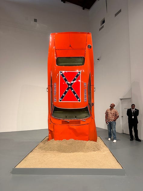 Aside these relics are contemporary works that grapple with who and what is celebrated in America and what is omitted. The show continues at The Brick where Kara Walker reverses Lost Cause hagiography by making a monster out of Stonewall Jackson. That statue, up for a century in Charlottesville, came down following the deadly nazi rally in 2017 after much public debate. The shows are a powerful and, in this era of obsequiousness, brave rebuke to those who would sanitize deplorable Americans and snuff out depictions of a truer, multicultural reflection of our shared heritage.