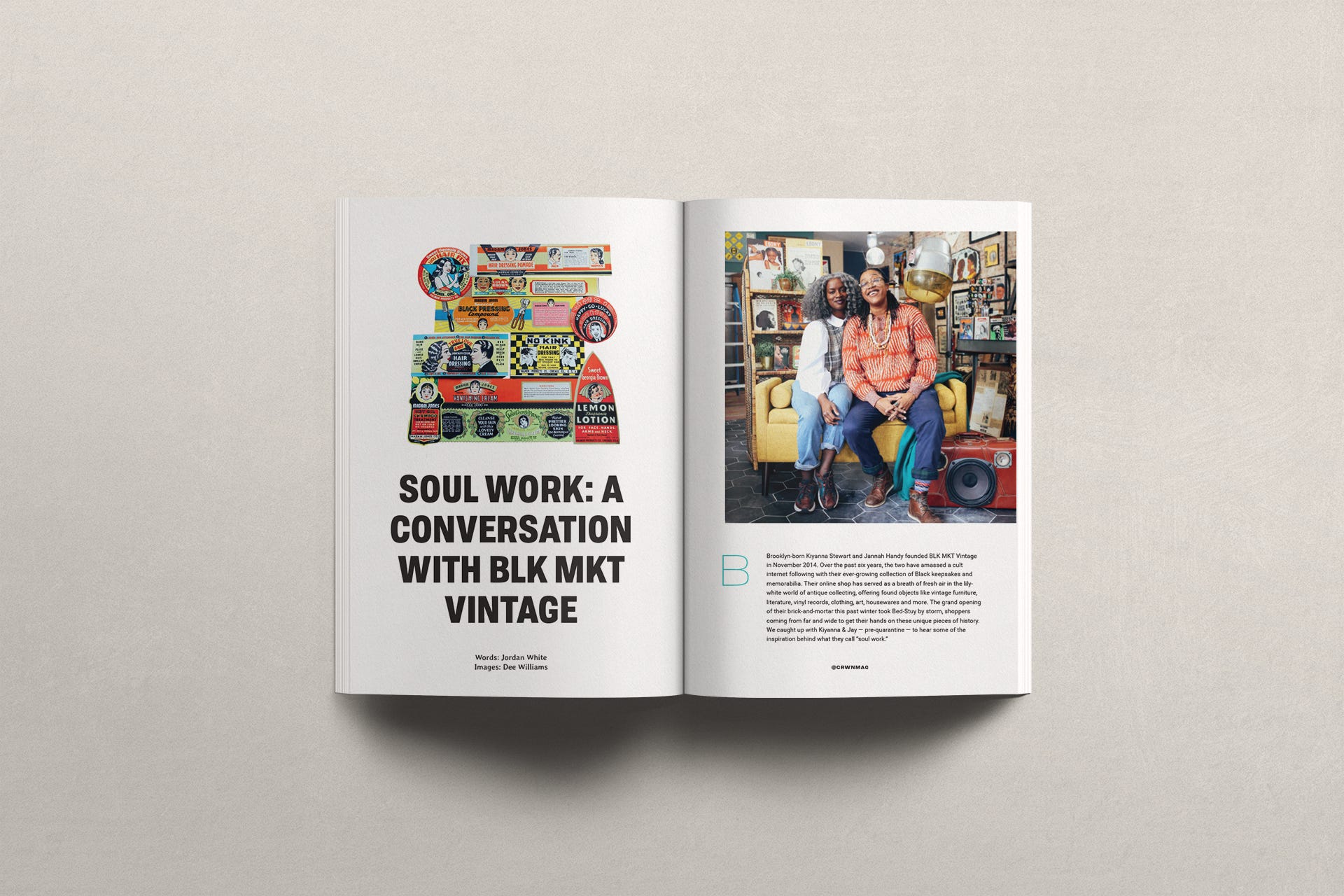 Brooklyn-born Kiyanna Stewart and Jannah Handy founded BLK MKT Vintage in November 2014. Over the past six years, the two have amassed a cult internet following with their ever-growing collection of Black keepsakes and memorabilia. Their online shop has served as a breath of fresh air in the lily-white world of antique collecting, offering found objects like vintage furniture, literature, vinyl records, clothing, art, housewares and more. The grand opening of their brick-and-mortar this past winter took Bed-Stuy by storm, shoppers coming from far and wide to get their hands on these unique pieces of history. We caught up with Kiyanna & Jay — pre-quarantine — to hear some of the inspiration behind what they call “soul work.”