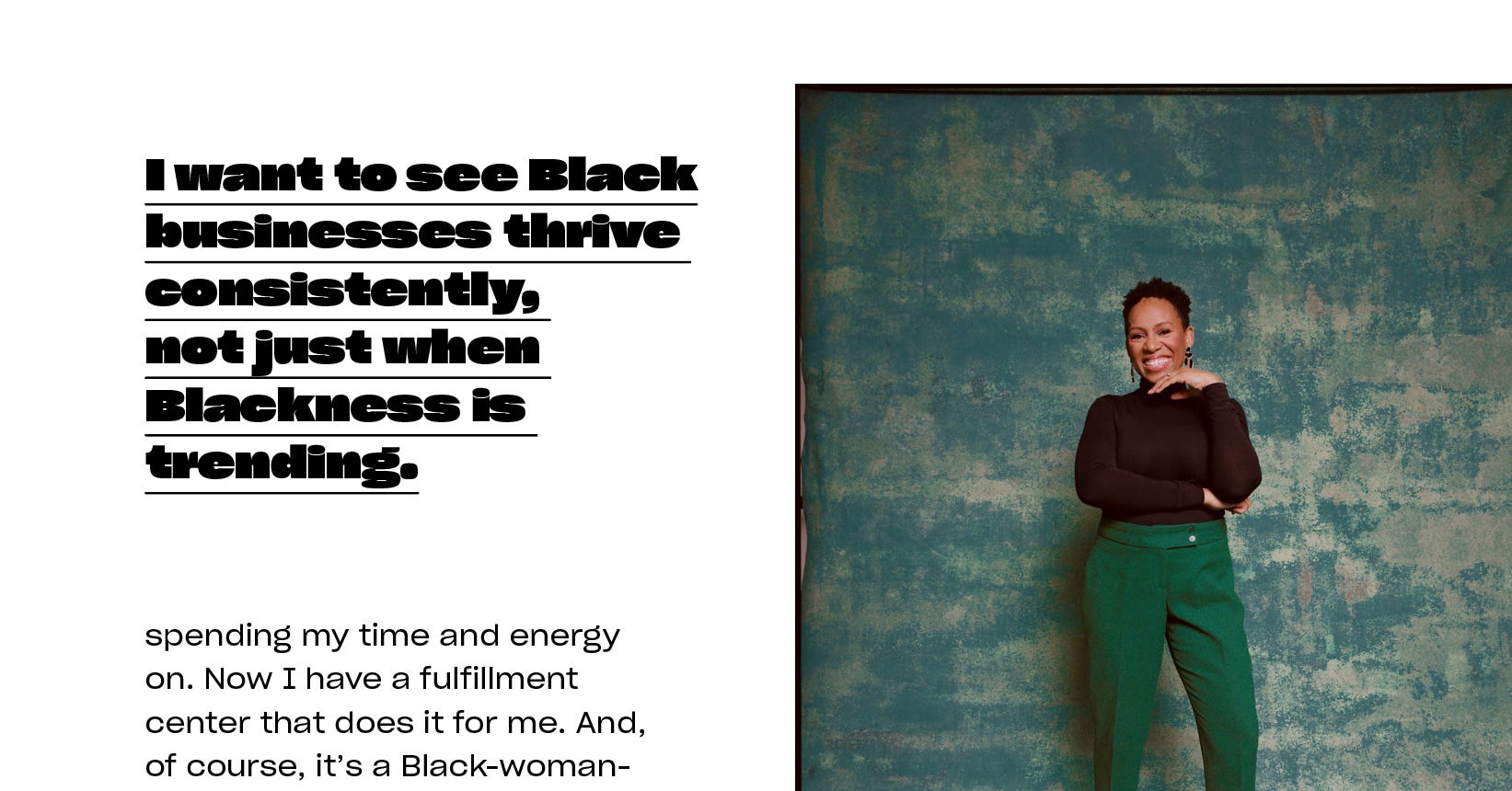 After George Floyd’s murder, there was this big collective push for supporting Black-owned brands. Whenever the police do something awful, the mass response is to give back and support Black brands. So in 2020, my sales quadrupled — and then went back down. The surge in sales was a moment, not a movement, that provided sustainable change for us. I want to see Black businesses thrive consistently, not just when Blackness is trending.